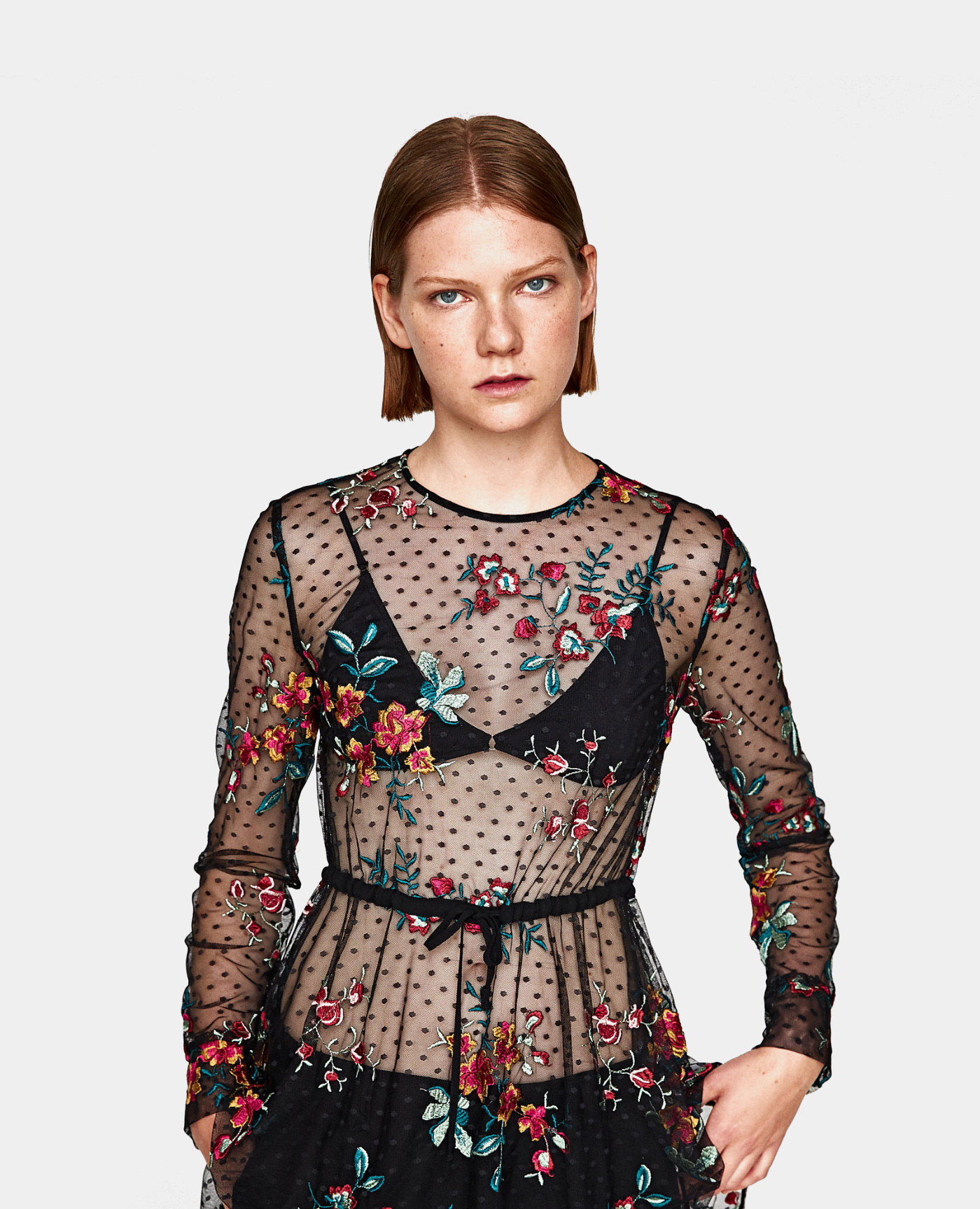 Shift dress from Ganni in Total Eclipse. Allover floral print. Round neckline. Concealed back zip closure. Long sleeves with black piping at cuff. Straight hem. Unlined. Casual fit.